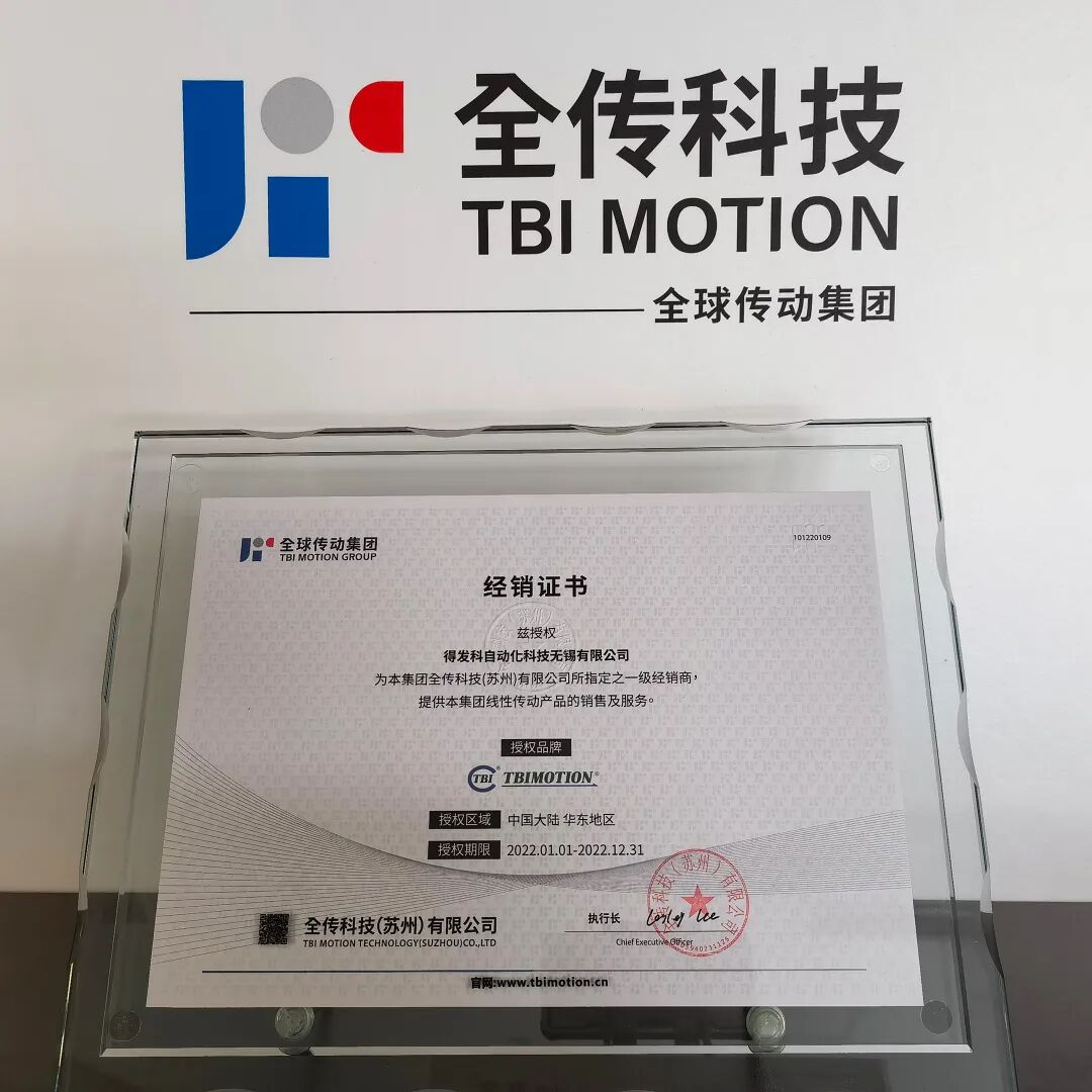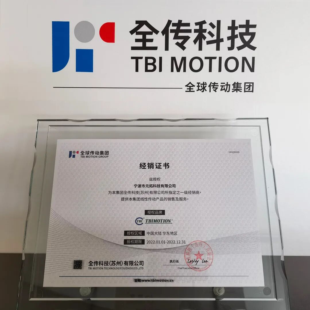 我司正式颁发2022年授权经销及专案经销证书,且公告以下证书为2022年我司唯一且认可合规经营TBI MOTION的授权公司。